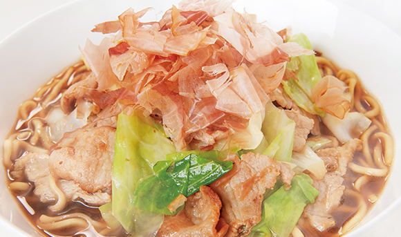 - 3の麺と具を盛り付け、トッピングをのせて完成です。